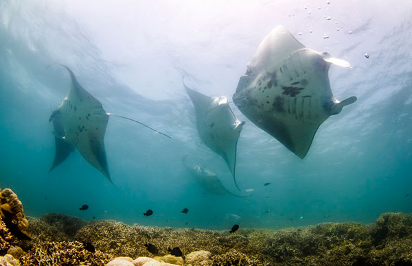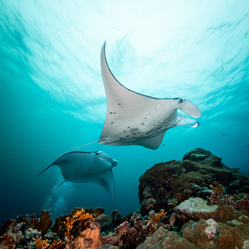 1. Scuba Diving with Mantas – Uniquely, Yap is home to one of the few Manta Ray Sanctuaries in the world and is a place where you can consistently encounter these majestic creatures year-round. Dive into our clear waters as observe these gentle giants as they come into the lagoons each day to feed and to have their bodies cleaned by small fish at areas called cleaning stations. During mating season from December to April, they form a train-like chain as the males follow the females in a state of courtship. Beyond mantas you can do shark dives, witness the mandarin fish mating ceremony, and encounter green sea turtles, dolphins and even pilot whales.