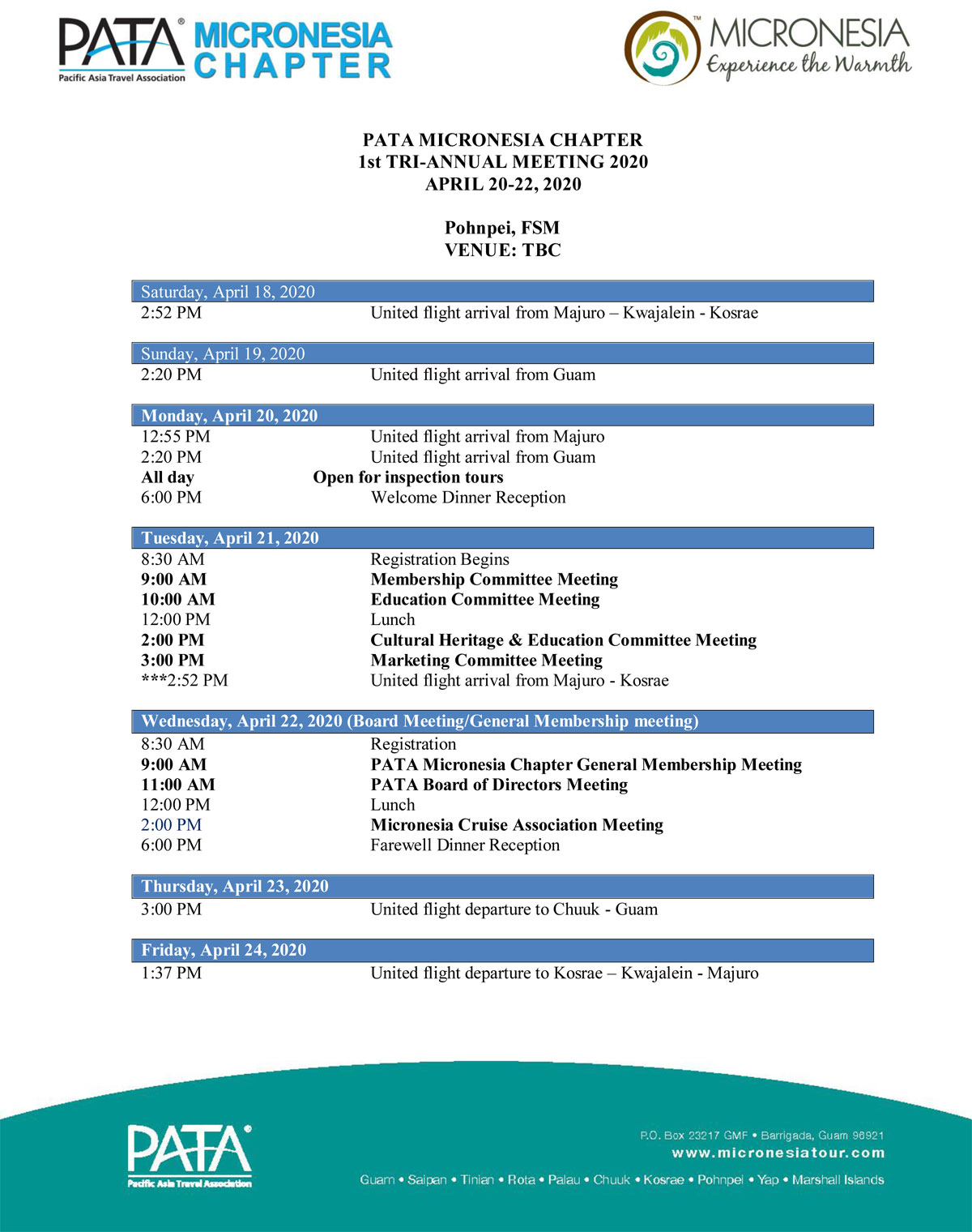 1ST PATA Micronesia Chapter Tri-Annual Meeting 2020 - POSTPONED UNTIL FURTHER NOTICE