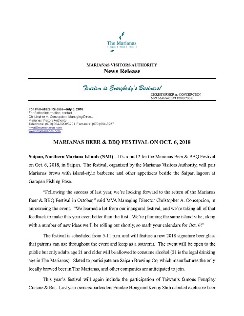 SAIPAN MARIANAS BEER & BBQ FESTIVAL Cultural Events Sat, 10/06/2018 - 12:00 CLICK HERE TO VIEW THE PR FOR MARIANAS BEER & BBQ FESTIVAL