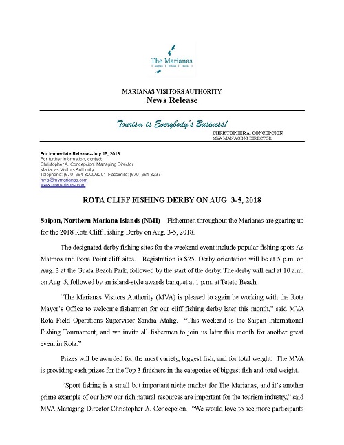 PR Rota Cliff Fishing Derby on Aug. 3-5, 2018