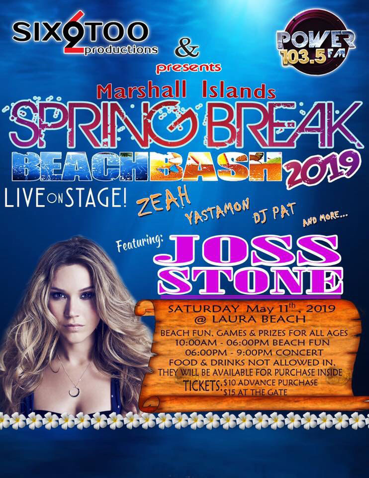 Its official! Spring Break Beach Bash 2019 going down on May 11th at Laura Beach. Come enjoy lots of fun under the sun, games, prizes and entertainment for all ages. Featuring actress, songwriter, music artist and GRAMMY award winner JOSS STONE, live on stage!