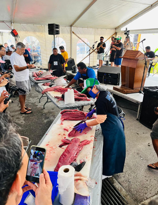 World Tuna Day is an annual event observed on May 2, 2022. However, on May 14, 2022, the Marshall Islands Marine Resources Authority (MIMRA) organized a World Tuna Day celebration. This event is a dedication to signifying more sustainable practices to help preserve excessive demand for tuna fish. According to the Minister of Natural Resources and Commerce, John Silk, stated, "Despite COVID-19, tuna continues to be our nation's primary economic advantage." He then gave a brief summary of how fishing has always been an integral part of our culture. Our forefathers fished from canoes, and the fish they captured were always shared with the community. This event also serves to celebrate our culture of "sharing". The Marshallese proverb "Jake Jebol eo," which translates to "Sharing," and sharing has been an essential component of our upbringing. To make the ceremony more exciting, MIMRA planned a tuna carving, tuna poke, and tuna cooking contest. For the first time, a woman competed in the category of tuna carving, and she won first place!
