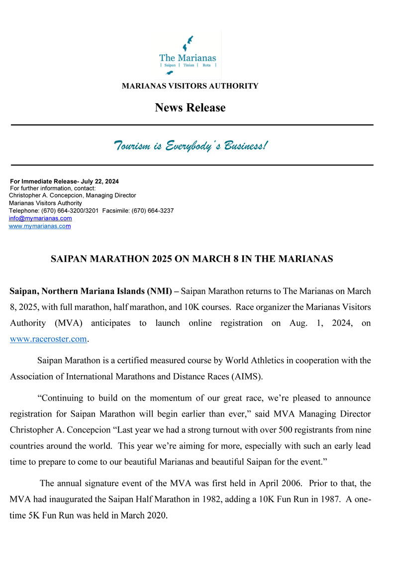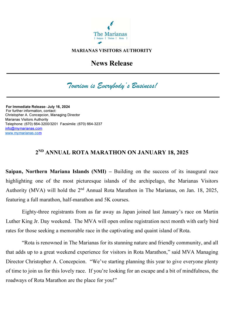 TINIAN 2nd ANNUAL PIKA RUN 5K ON FEB. 15, 2025, IN TINIAN Marathon Saturday, February 15, 2025 - 12:00