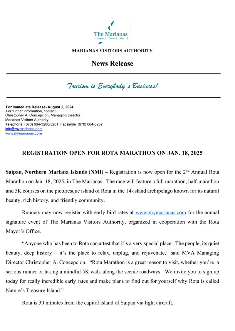 Registration Open for Rota Marathon on Jan. 18, 2025