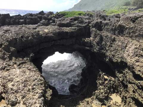 We descend the northeastern cliff to the isolated, beautiful coastline of northeast Guam. We walk along the coastal cliffs, visit the push/suck cave to swim, the wave cave, Shangri-la, the wind tunnel, and land’s end with its blowhole Bring: 4 quarts water, electrolytes, hiking shoes, sun screen, sunglasses, lunch and snacks, and camera Special conditions: Hiking over rough sharp rocks, climbing steep slopes/boulders, climbing w/rope, little shade, and a long ascent at the end.