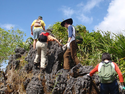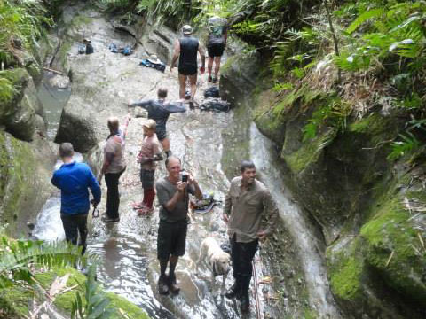 We explore a tributary of the Tarzan River, hiking up a deep gorge with large boulders and rock formations to climb up, over, and around. Then we visit several waterfalls and small swimming pools. Bring: 3 quarts water, get wet shoes, gloves, insect repellant, sunscreen, lunch and snacks, and camera. Special conditions: Lots of walking in water, steep hills, climbing over boulders, and a little sword grass.