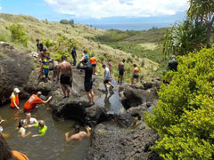 We explore a long narrow cave along the limestone/volcanic junction. We’ll visit the big room, the rabbit hole, our only underground waterfall, three different formation rooms, and the start of the asteroids. Bring: 1 quart water, get wet shoes, gloves, insect repellent, snacks, waterproof bag, and camera. Special Conditions: Climbing in very rough, sharp coral, mud, climbing in a cave, short steep climbs, crawling in water, crawling over rocky surfaces.