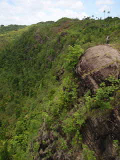 We visit the Southern battlefield from the Liberation of Guam in 1944 on the slopes of Mt. Alifan. We will visit foxholes, fighting trenches, gun positions, tunnels, and caves, all the while enjoying the great view. The adventurous can continue on to the mountaintop lookout, with fantastic views. Bring: 1 or 3 quarts water, flashlight, gloves, sun screen, insect repellent, lunch, and camera. Special conditions: Low sword grass, crawling in tunnels, mosquitoes, uphill climbs.