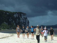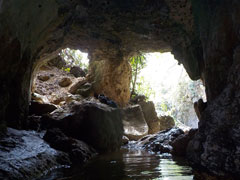We descend into the limestone forest to an old fruit farm, then to the rugged coral coastline with outstanding views. Then we visit the canyon, the goat cave, and land's end, and then swim in the sea cave. Bring: 4 quarts water, strong hiking shoes, sun screen, insect repellent, lunch and snacks, and camera. Special conditions: Hiking over rough sharp coral rocks, thick vegetation, and a long steep uphill climb out.