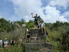We hike to see some US foxholes from WWII, the WWI gun positions and their command post, optionally walking the knife edge trail. We exit by either the medium Maguagua Falls trail or the difficult Tarzan Falls route. Bring: 3 to 4 quarts of water, hiking shoes, gloves, sunscreen, insect repellent, lunch, snacks, and camera. Special conditions: sword grass, steep rocky or muddy slopes, and long distances for the Tarzan Falls option.