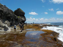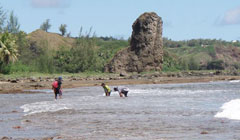 We hike south along the beaches and coastal headlands from Agat to Umatac, visiting, Facpi Island, Pale Apugon, Sella Bay, Cetti Bay, and Fouha Rock. We pass several areas that are great for swimming and/or snorkeling. Bring: 4 quarts water, wet shoes, swim suit, snorkel gear, gloves, sun screen, sunglasses, lunch, snacks, and camera. Special conditions: A long hike in the sun over sand, rocks, mud, and partly in the water.