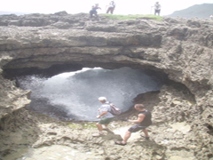 We descend the northeastern cliff to the isolated, beautiful coastline of northeast Guam. We visit the push/suck cave to swim, the wave cave, Shangri-la, the wind tunnel, and land’s end with its blowhole. Bring: 4 quarts water, hiking boots, sun screen, sunglasses, lunch and snacks, and camera. Special conditions: Hiking over rough sharp rocks, climbing steep slopes and boulders, little shade, and a long ascent at the end.
