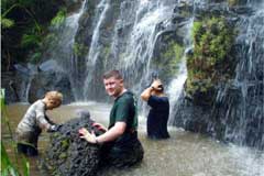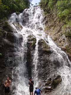 We hike to a beautiful large waterfall that is seldom visited, then upriver to Lower Sigua Falls. On the way we visit the tank farm and explore a shady waterfall filled jungle river.     Bring: 4 quarts water, get wet shoes, swimsuit, gloves, sun screen, insect repellent, lunch and snacks, and camera.      Special conditions: Rope climbing up and down, steep slopes, slippery mud, walking in water over slippery rocks, and a very long hike